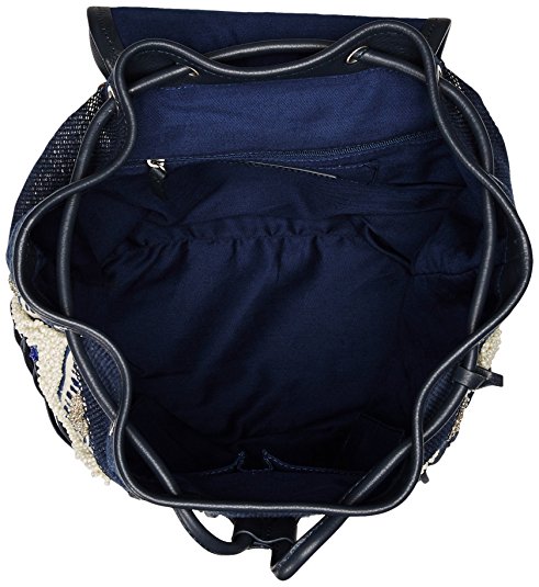 这款Rebecca Minkoff Mumbai Fringe女士刺绣真皮拼接双肩包,正面采用了大面积的刺绣和珠串装饰,搭配下摆的真皮流苏装饰,同时用真皮包边,结实耐磨且设计感十足,吸睛指数爆表。包身尺寸约为34*34*16cm,容量适中。内设多功能贴袋,可分开放置不同物品,方便拿取。