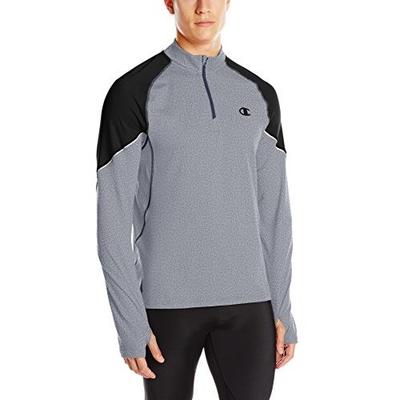 这款冠军Champion Performax 男子弹性套头衫,小立领,半拉链设计,面料是90%聚酯纤维混合10%氨纶弹性纤维,透气吸汗,延展性和耐磨性好,易洗速干好打理;具有弹性,上身舒适不紧绷,贴身不压身;袖口带拇指扣大拇指可以穿过拇指扣漏在外面,而手掌可以包在袖子里保暖,适合户外运动时穿着。