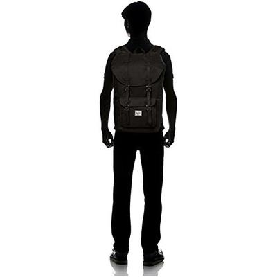 Herschel Supply Co. Little America 黑色双肩背包,有着北欧学院气质,清爽简约的色彩,内置电脑插袋。外层撞色拼接皮袋设计,时尚休闲。无论是度假还是潮搭都是不错的选择,卓越的细节设计,都透露着浓浓复古清新的气息。 中号尺寸:39*29*11CM,型号:15英寸,中号容量:14.5升,大号尺寸:51*29*17CM,型号:20英寸,大号容量:23.5升。