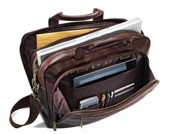 这款是Amazon上卖的最好的一款新秀丽真皮公文包,超500人给出了满分评价。复古外形设计,棕色真皮包面搭配黄铜色锁扣,低调稳重而不失大气。尺寸约42 x 35x 12cm,最大可以容纳15.6寸的笔记本电脑。