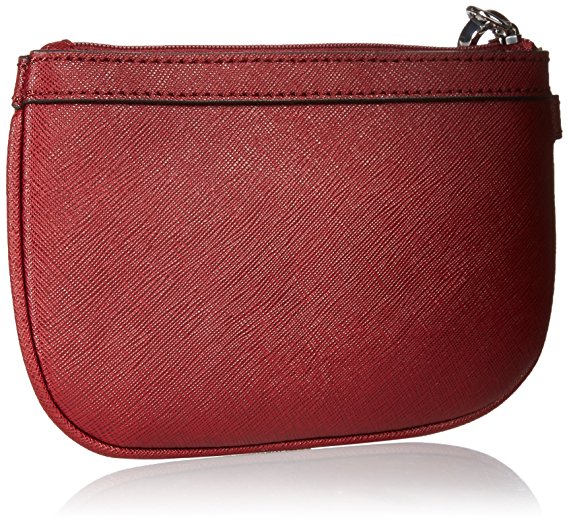 这款Calvin Klein SaffiaNo 女士手拿包,采用Saffiano十字纹皮革材质,硬挺有型易打理。款式简约,仅有品牌五金LOGO装饰,顶部拉链开合,整体尺寸约为15.24*10.16cm。