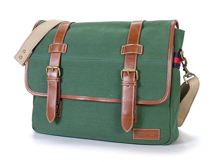 这款Tommy Hilfiger Workhorse Messenger男款帆布信使包,使用100%帆布材质,十分经典的信使包造型,可拆卸肩带设计,内置电脑内胆包,内有多个隔层可收纳钢笔,铅笔,移动电子设备,钥匙,名片等。