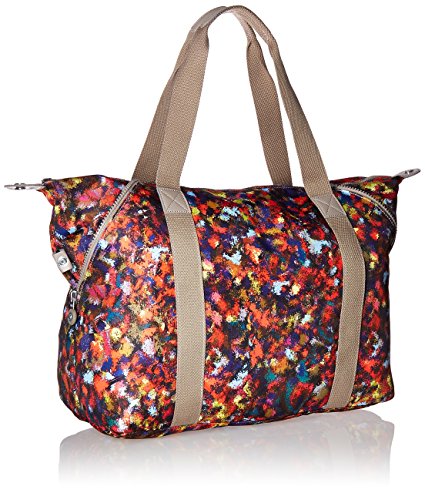 Kipling Art M Prt凯浦林大号单肩手提包,采用印花尼龙面料,休闲大尺寸单肩斜挎包,外部尺寸为18 x 41 x 38 cm,肩带可拆卸,可背可提。顶部拉链开合,内部设有两个贴袋口袋,一个钥匙扣和一个拉链侧袋,容量较大,适合外出度假时当旅行包使用。