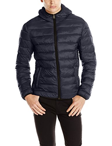 李维斯 Levi's Men's Packable Puffer Hoody 男士连帽轻型保暖羽绒服 可收纳成背包,这种排骨状的轻型羽绒服穿着舒适,是冬天必备的款式,今天推荐的这款采用面料:100%尼龙,衬里:100%涤纶,衣面手感顺滑细腻有光泽,穿着起来轻质舒适,而且透气性极佳,保证了干爽的穿着效果,防水性也相当不错,拉链开合,方便穿脱,采用连帽设计,可收纳成背包,彰显品牌魅力。两侧的口袋平时可放置随身物品,外形时尚休闲,适合日常休闲或是户外穿着。
