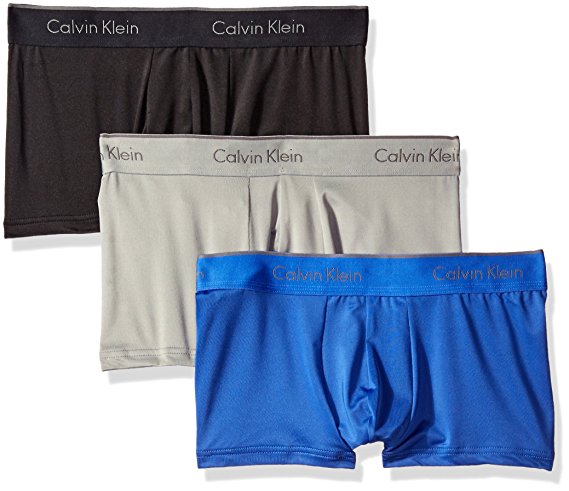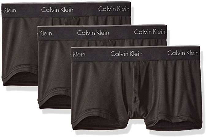 Calvin Klein Microfiber 弹力速干 男Trunk平角内裤 3条装,Trunk平角款式,有蛋囊,面料是90%超细聚酯纤维,轻质柔软,速干透气,还混10%弹性纤维,具有弹性,舒适不紧绷,上身版型也较好,不会松垮;弹性腰带,印有品牌Logo。