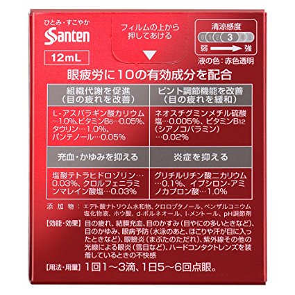 这款参天SANTEN顶级眼药水含有玻璃酸钠及减充血配方等10种超浓度成分,可以改善眼睛模糊的症状、结膜充血、眼睛痒、眼睛疲劳、眼病预防。戴隐形眼镜或是阳光照射引起的不适感、眼睛分泌物过多等等。适应人群:长期面对电脑者或用眼频繁者,主治眼部疲劳,去血丝。使用方法:滴眼,一次1-2滴,一日4-6次。