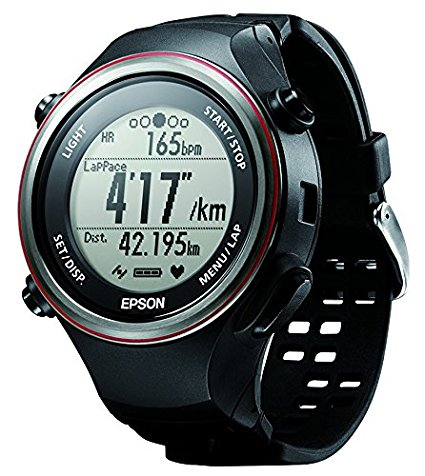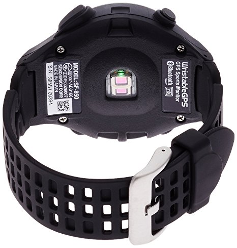 EPSON在2016年12月发布了3款运动手表,其中,SF-850 GPS是主打跑步运动的旗舰级运动心率表。相比GARMIN、SUUNTO,这款运动表尺寸上更为小巧,45*14.2mm,塑料材质,重52g,50米防水。单色LCD显示屏,普通镜面。背后为高精度光电心率传感器,内置自主研发的GPS芯片。内置的锂电池,可在GPS、心率双开的模式下持续20小时,手表模式下坚持16天,续航较长。可通过蓝牙与手机APP相连。