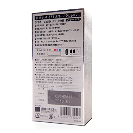 冈本公司超薄002是情侣们的最佳选择之一哦,配备储精囊设计,只有0.02的薄厚程度更贴身,亲肤感倍增,采用新型聚氨酯材质,更加强韧,薄厚均一,没有浮点。适合正常大小的使用,一盒里面有6支,三种颜色,每种颜色2支。可以搭配油性润滑剂和水溶性润滑剂使用,新型聚氨酯材质与人体肌肤相融合,不会发生过敏现象哦。
