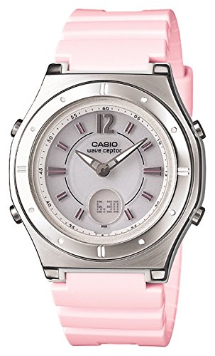 这款CASIO WAVECEPTO,型号为LWA-M142-4AJF,不锈钢表壳搭配粉色树脂表带,俏皮可爱。内置一颗石英机芯,太阳能动力,6点钟方向有日期显示,银色指针和刻度显示,表盘简洁大方。 世界6局电波,省去了校对时间的烦恼,适合经常飞来飞去的人士,30米的日常防水功能。