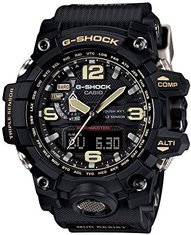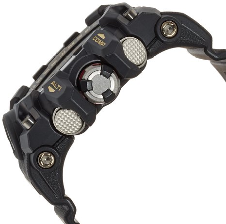 G-SHOCK 泥人系列 GWG-1000-1AJF,集合了MASTER海陆空系列的外形,真正象征着高端,功能、实用性均是顶级。最大的特色就是将新型防尘防泥构造应用于指针加液晶的复杂双显设计中,并用垫片和引导结构保证全部按钮都可以防止泥沙侵入。表身设计也参考了很多重型机械的耐冲击结构,以保障极端情况下手表的功能正常运转。GWG-1000配备了第三代的三重感应器,可以检测方向、气压以及温度和高度,方便在野外环境中开展工作。卡西欧引以为傲的六局电波和光波动能依然不会少,连表镜也选用了高端表款才有的更加耐磨的蓝宝石玻璃,定位一目了然。搭载了三重感应还要防泥,表盘体积达到了59.5×56.1×18.0 mm,配合粗野防滑的尼龙表带,想要驾驭真的需要相对威猛的体格。