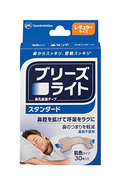 这款Breathe Right 鼻舒乐 成人鼻塞通气鼻贴 标准型 肤色30片装,不含任何药物,不在鼻腔口腔内塞入异物,不会将细菌带入鼻腔口腔,不会弄脏被褥。标准型通气率很大提高31%,强力型通气率很大提高53%,减轻鼻鼾。扩张鼻腔,呼吸顺畅,援助睡眠。白天晚上均可使用,切忌1天佩戴12个小时以上!5岁以下儿童请勿使用!本款为标准型鼻贴30片装。