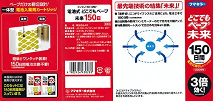 FUMAKIRA VAPE 3倍效果 电子家用蒸汽式驱蚊器采用药物驱蚊,无毒无香料,专为孕妇和婴儿设计;最新版的药剂扩散功力大幅提升,具有以前3倍的驱蚊效果,一天8小时,能用200天,最长连续使用时间不能超过12小时;药剂换个电池一体设计,使用起来简单方便;超静音设计,夜晚使用也不会影响宝宝睡眠;体积不大,方便携带。需要注意的是它不会杀死蚊子,只会让蚊子不咬人,驱蚊不等于灭蚊。