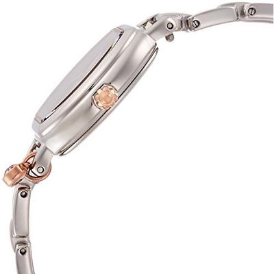这款Citizen 西铁城 Wicca系列 KP2-531-91 女款光动能腕表,采用精钢材质表盘,采用光动能机芯,利用太阳能发电,省去了频繁更换电池的烦恼。时间精准,精度为±15秒/月。表盘直径23.5mm,50米生活防水。配色是时下流行的玫瑰金,形状微微矩形和圆形的结合体,形状比较特别,表盘下方还有一颗粉色的精致施华洛世奇水晶吊饰,高端大气,恰到好处。