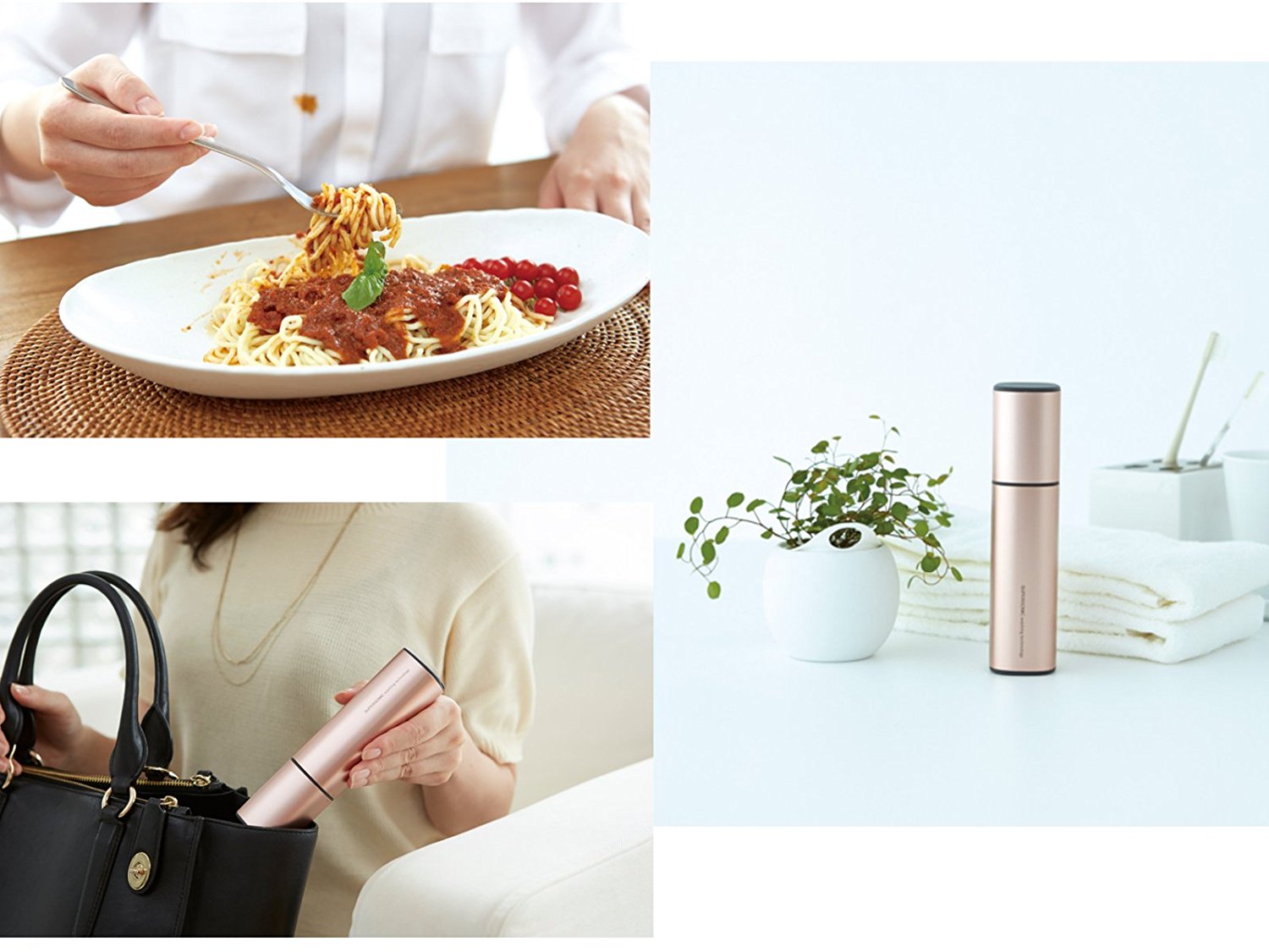 此外,由于夏普UW-A1采用了充电式设计,使用的时候就免除了电源线的困扰,规格尺寸大约为40X168mm,重约200g,轻巧紧凑的外观设计,也十分便于携带。另外,夏普UW-A1还带有一个类似海绵粉扑的配件,可以用于储水,出门在外的时候万一衣服被弄脏了,还可以作为应急清洁。该产品内置电池为900mAh,一次充满电需要5小时,约可续航30分钟左右。
