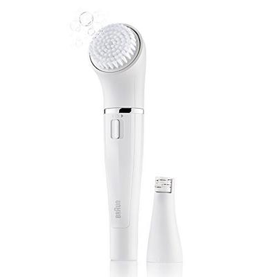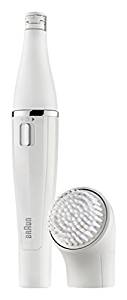 博朗这款 SE810 是集吸脸刷、脱毛器二合一的双效净肤仪,它带有两个刷头,分别负责清洁皮肤和面部除毛的工作。洗脸刷能够温和的清洁面部的油脂和残妆,帮助皮肤角质代谢,它工作起来不会伤害皮肤。除毛刷头用来去除面部细小的毛发,它有10个精密的轮夹能够拔出细毛,很快就能剔除那些恼人的“小胡子”,但是要注意脱毛头不能用于修理眉毛。机器使用电池驱动,包装内包括一个机身、一个脱毛头、一个洗脸刷、一个清洁脱毛器的小刷子、一节5号电池、一个保护帽。可以全身水洗,使用非常方便。