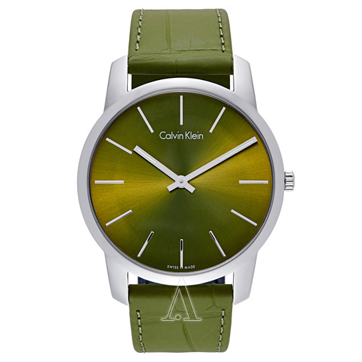 橄榄绿表盘,大胆前卫,风格年轻!Calvin Klein City系列,型号为K2G211WL,Ashford(下单教程)原价$215,现价