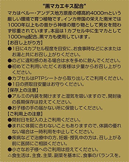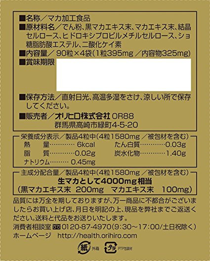 ORIHIRO立喜乐黑玛卡1000软胶囊采用的原料是号称“南美人参”的玛卡,是在南美洲海拔4000米以上的安第斯山高原生长的一种神奇植物。ORIHIRO立喜乐黑玛卡1000软胶囊具有增强人体免疫力、快速恢复体力、壮阳补肾、消除疲劳等神奇功效,日常的滋补强身是非常好的选择。这款胶囊每4粒中,含有生玛卡400mg,黑玛卡精华粉末200mg,玛卡精华粉末100mg,绝不偷工减料。款玛卡胶囊是360粒大包装,每天4粒,可以吃三个月左右,很实惠。