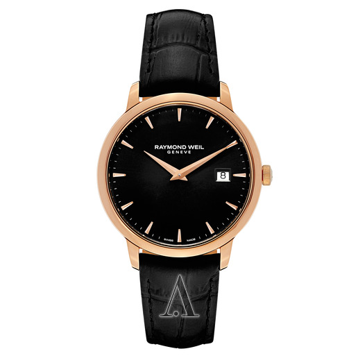 这款Raymond Weil雷蒙威 Toccata系列男表,型号为5488-PC5-20001,玫瑰金和黑色的搭配,让这款表多了一分神秘和敬畏感。内置一枚瑞士石英机芯,搭配黑色小牛皮表带,表壳、时标和指针均为玫瑰金色不锈钢材质,3点钟位置显示日期。8mm厚度,50m防水。