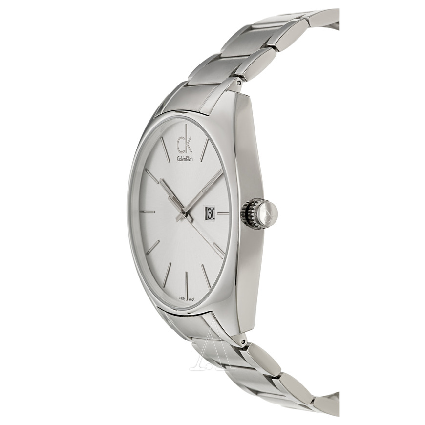这款Calvin Klein Exchange 男式腕表,型号为K2F21126,抛光不锈钢材质,银色指针及条形刻度,通体为闪亮的银色的表款总是看起来很清新,矿物晶体表镜,3点钟显示日期,外观上中规中矩,比较简洁。瑞士石英机芯,表盘直径44mm,厚度9mm,30米防水。