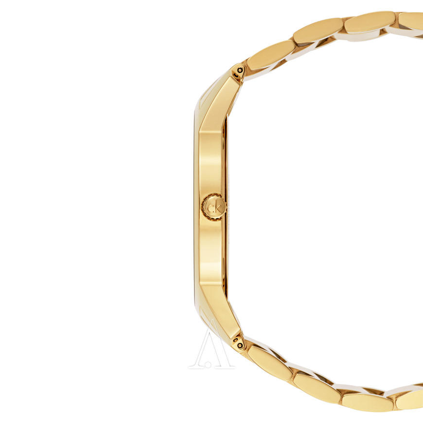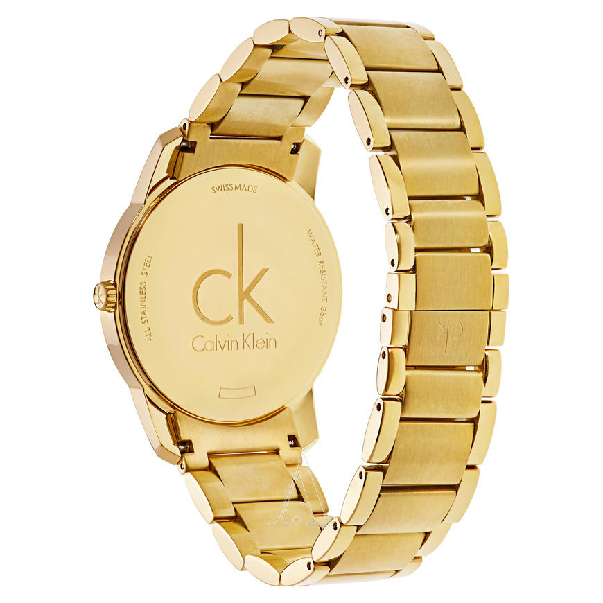 这款Calvin Klein City系列男表,型号为K2G21546,整体为金色和纯白色的搭配,颜值非常高。内置一枚瑞士石英机芯,镀金色不锈钢表带,搭配干净整洁的表盘,尽显极简时尚。镀金色条形时标和指针,比较显眼,12点位置的CK logo,辨识度高。表径43mm,厚度7mm,30m防水。