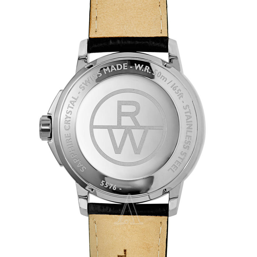 Raymond Weil蕾蒙威男士时尚腕表,货号为5576-ST-00300,属于Tradition经典系列,采用瑞士石英机芯,白色表盘搭配文艺蓝针及黑色罗马数字时标,简洁复古、清新文艺,银色精钢表壳搭配黑色真皮表带,表盘直径42mm,厚度仅11mm,12点位置日期显示,耐刮擦型蓝宝石水晶表镜,50米防水。