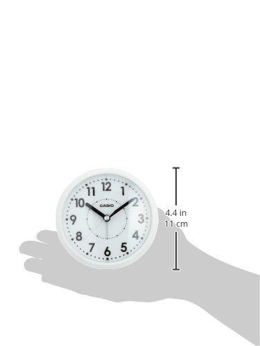 卡西欧这款TQ-271-7JF 白色桌面闹钟采用树脂材质,4层级电子音报警并逐渐放大,贪睡响铃约4分钟时间间隔最大为30分钟,采用1节5号电池驱动,精度在平均每月误差±20秒。尺寸为表盘直径105mm,厚度59mm。纯白色表盘与黑色指针简约时尚。