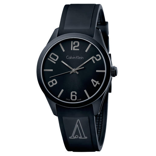 这款型号K5E514B1的Calvin Klein Color系列男表,采用黑色硅胶表带,亲肤舒适,40mm的黑色表盘上展示灰色夜光指针和时标,小巧精致,光纤不好地方看时间也方便。内置一枚石英机芯,10mm厚度,30m防水。
