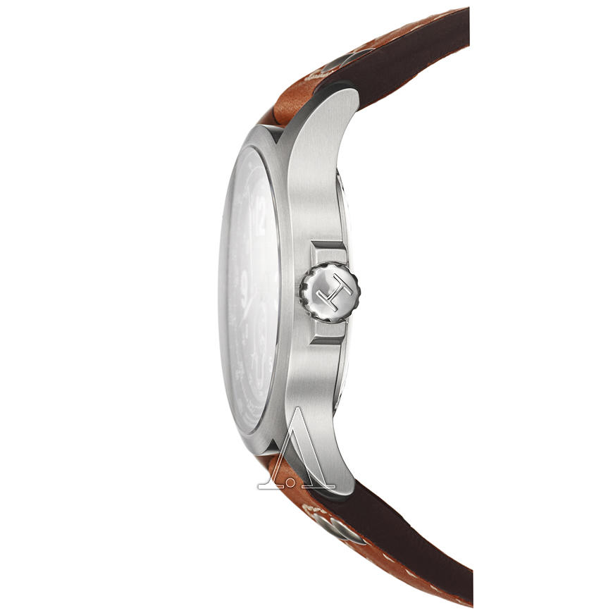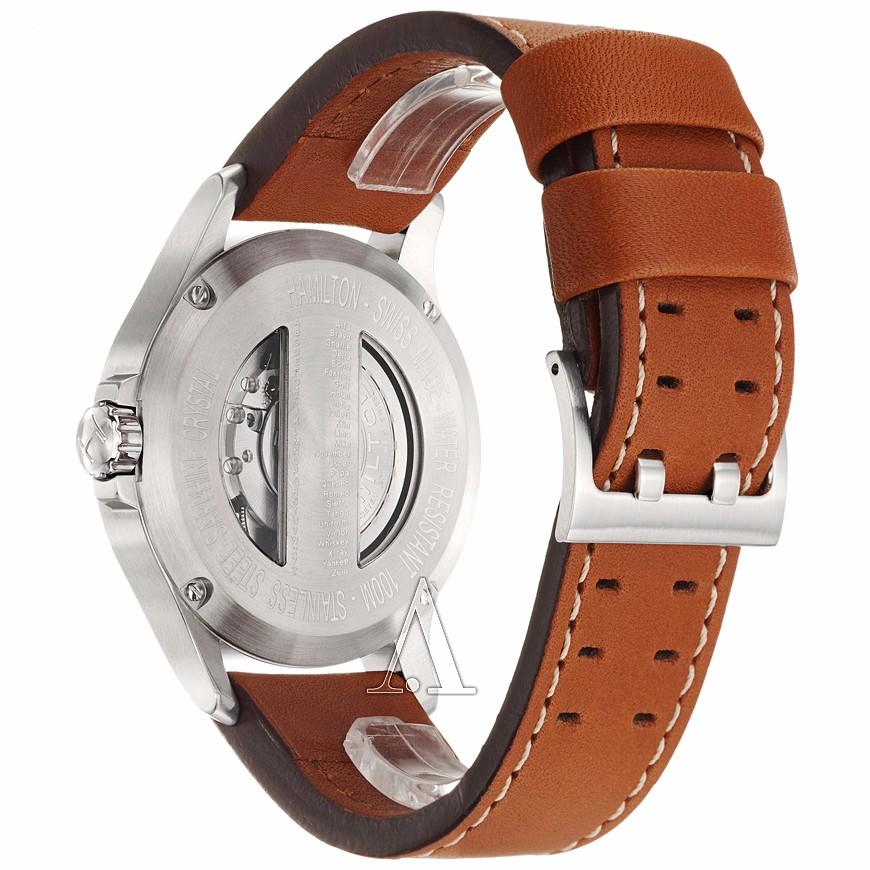 这款HAMILTON 汉米尔顿 Khaki Aviation QNE 卡其航空系列 H76515533男款机械腕表,采用ETA-2895-2的机芯;黑色表盘上细致的航空仪表盘式设计,内表圈带气压高度转换器,搭配大数字阿拉伯数字时标和夜光时针,易读且功能齐全;六点钟位置设复古的小秒针表盘和日历窗,背面镌刻航空代码对照表,外加半背透设计,使用又好看。耐刮擦蓝宝石表镜,黑色皮质表带,表径44mm,厚11mm,100m防水。