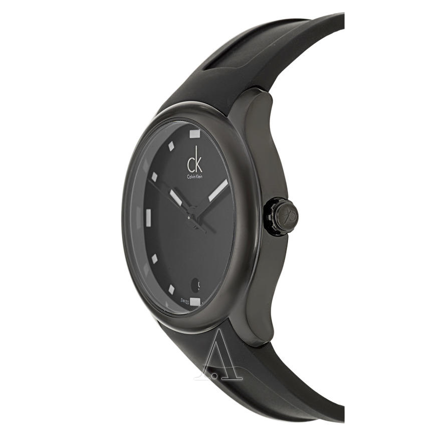 这款CK腕表就是运动风的,黑色橡胶表带,材质轻巧,方便运动时佩戴。黑色系的款比较大众百搭,表盘上的白色指针和刻度非常显眼,6点钟位置显示日期。时标的设计很用心,3、6、9、12点用稍长的线段来区分,方便大家看时间。