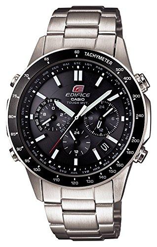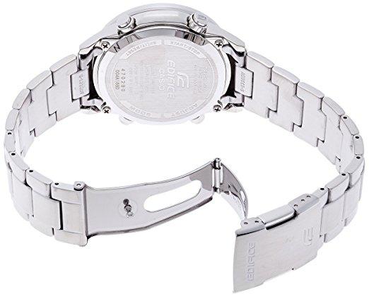 这款EQW-550D-1AJF 男士电波表支持6局电波包括丘波,使用与海神相同的Tough Movement强韧机芯,耐冲击性非常高,独立5马达驱动,具有指针自动校准功能;光动能技术为电池充电,即使微弱的光源也能转换成电力保持手表运转;1/20秒秒表,低电量指示,29个城市时间和全自动日历;100米防水,不锈钢表带,表蒙为无机玻璃制成,硬度较蓝宝石稍低,但日常使用耐腐蚀耐冲击性都很优异,满足日常使用的强度。