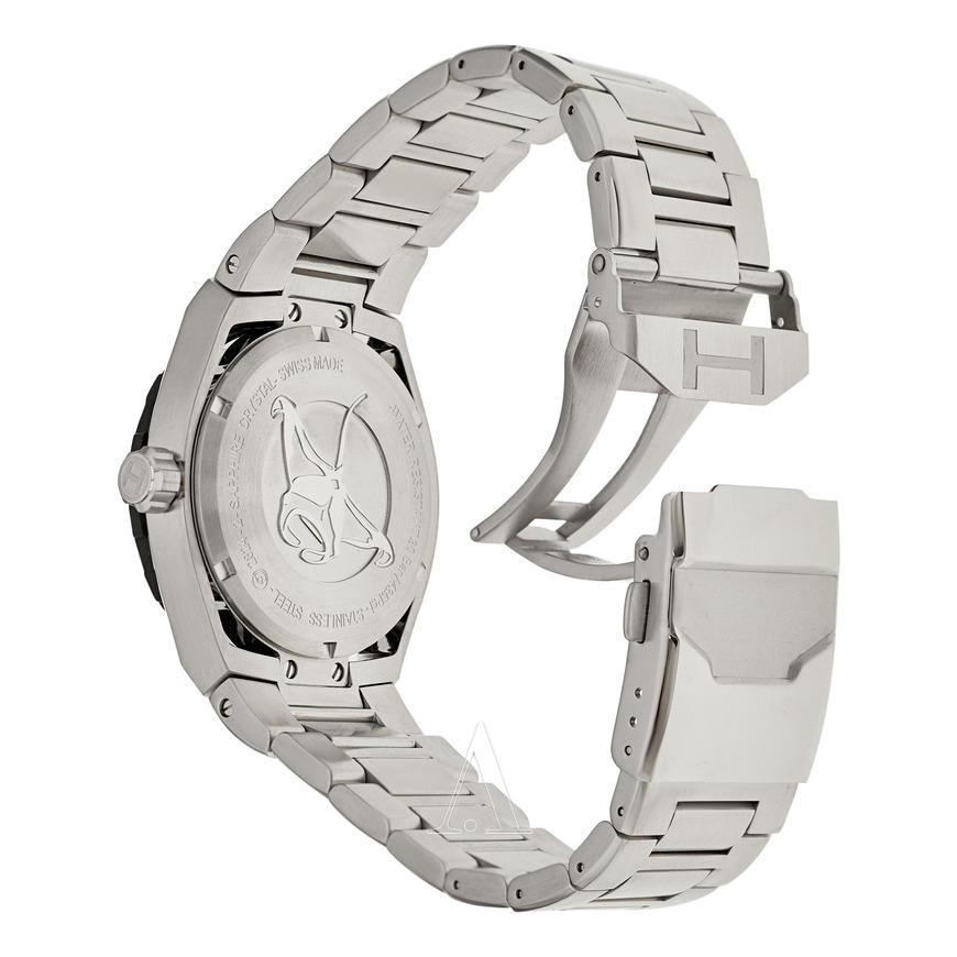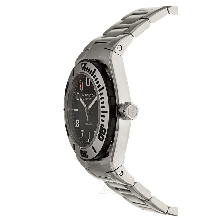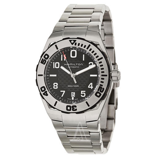 这款H78615135的Hamilton汉密尔顿卡其海军系列男表,瑞士制造,采用ETA2824-2全自动上链机械机芯,6点钟日期显示,银色不锈钢表壳,表盘直径42mm,厚度13mm,耐刮擦的蓝宝石玻璃镜面,银色不锈钢表带。底盖压印巨型魔鬼鱼,流露出海洋气息。防水高达300米,戴着玩深潜都可以了。