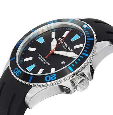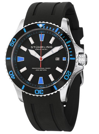Stuhrling瑞士名表品牌,拥有长达200年的历史。以表芯制造的完美与精确而闻名,是少有的品质一流产品,具有上层品质。706.02属斯图灵 Aquadiver Regatta系列运动潜水手表,采用酷黑的橡胶表带,表盘及表壳设计,极具运动感,经典的竞潜外观设计,霸气十足,表盘直径43mm,厚度12mm,既然为潜水手表有着绝佳的防水功能,防水深度可达200米,采用日本石英机芯!美国亚马逊(下单教程,海淘常见问题解答)$52.86,重量约1磅,到手约360元,非常值得入手!