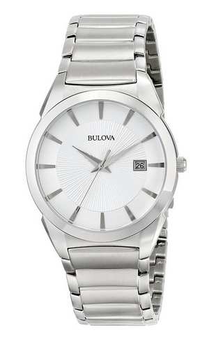 宝路华品牌於1875年成立,设计结合传统及创意,制作高准确性的腕表,绝对是您负担得起的奢华。此款宝路华男士手表内置优质日本石英机芯,保证了时间的精确,外观采用银色抛光不锈钢表壳和表链,坚固大气,防刮耐磨矿物玻璃表镜下为白色纹理表盘,表盘上镶有银色刻度,3点钟方向为日历显示窗口,银色时分秒指针简约现代,表壳直径38mm,30m防水。美国亚马逊(下单教程,海淘常见问题解答)原价$199,现价$87.50,用邮件八折码后$70,重量约1磅,到手约470元,非常值得入手的手表!