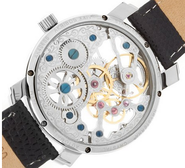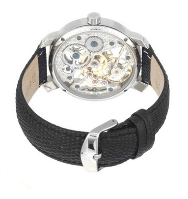 Akribos阿克波斯男士华丽达芬奇机械表,采用加固的不锈钢表框,镂空式花纹金属表盘,防刮耐磨的矿物晶体表镜,背面为展览式的透明贝壳,可以清晰的 看到机械手表运齿轮运作过程,蓝色夜光功能的时分指针,9点钟方向的秒数副表盘,黑色的蜥蜴花纹皮质表带,表壳直径42mm,30m防水。美国亚马逊(下单教程,海淘常见问题解答)原价$749,现价$111.57,重量约1磅,到手约720元,是一款非常白菜的机械表,喜欢的可以入手!