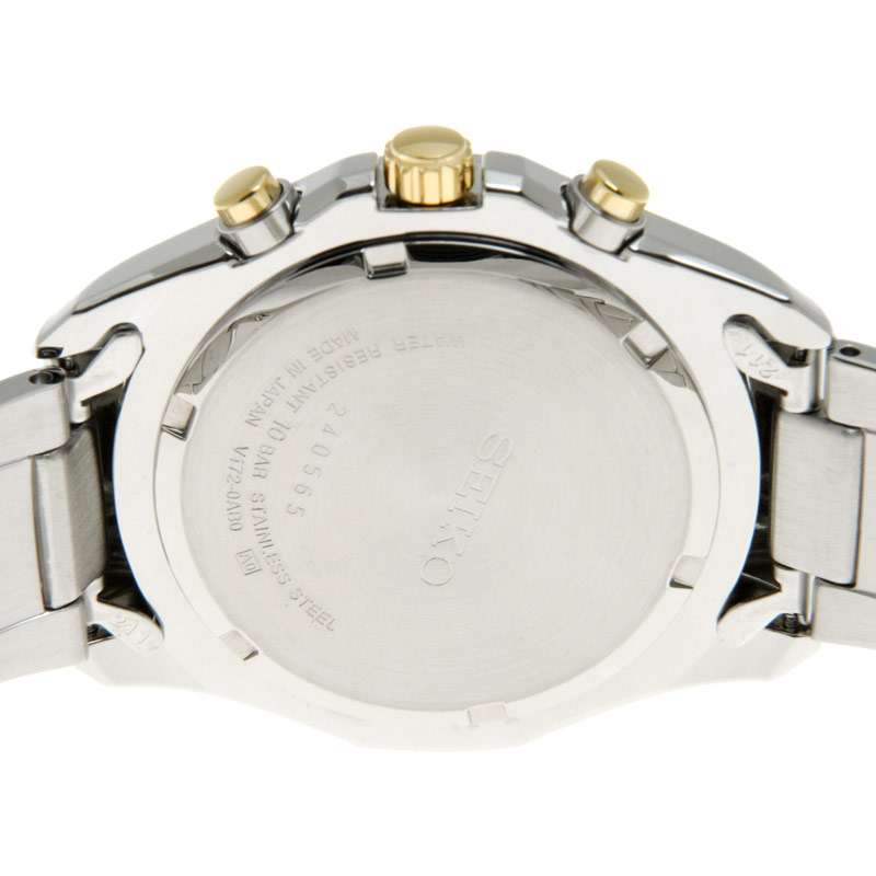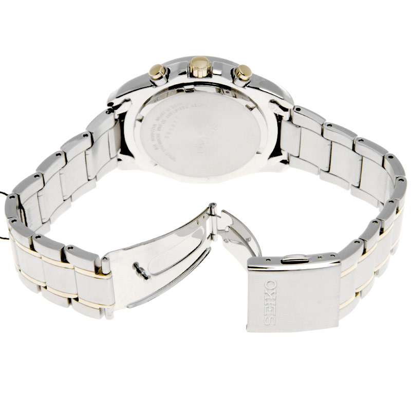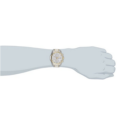 此款手表来自Seiko精工,型号为SSC002。采用石英机芯。金黄色和银色双色调的不锈钢表壳和表带。白色表盘和金黄色指针,十分典雅。硬化防刻划Hardlex玻璃表镜。三眼款式。三点钟位置显示日历。表壳直径39mm,防水100米。美国亚马逊(下单教程)特价$140.64,到手约¥950(不含税)