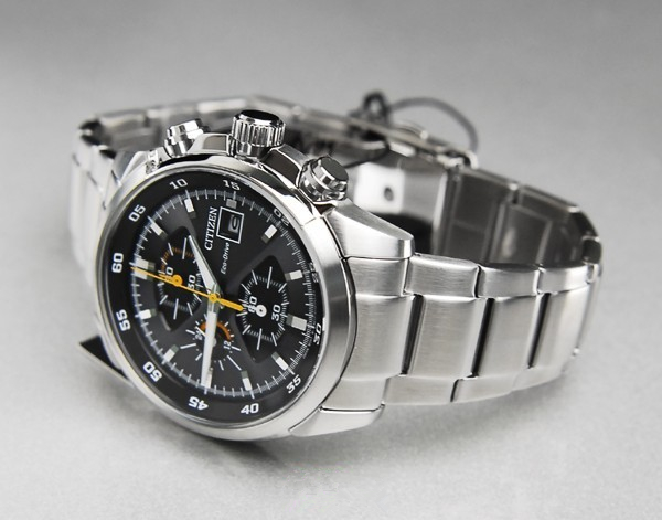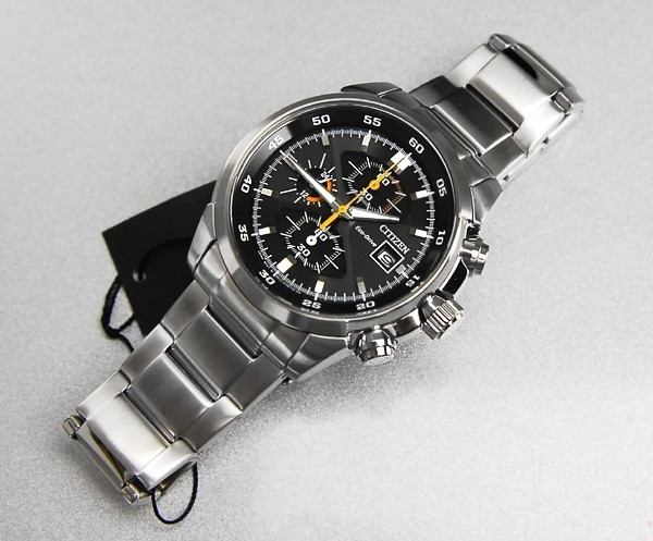 这款型号为CA0130-58E,黑色表盘搭配银色标刻,跳跃的黄色和银色的指针充满运动活力,上下对称的扇形的小表盘可提供12/24小时显示、60分钟计时以及1/5秒秒表计时,耐磨矿物玻璃表镜,B612光动能机芯,表盘直径46mm,厚度12mm,3点钟日历显示,防水100m。