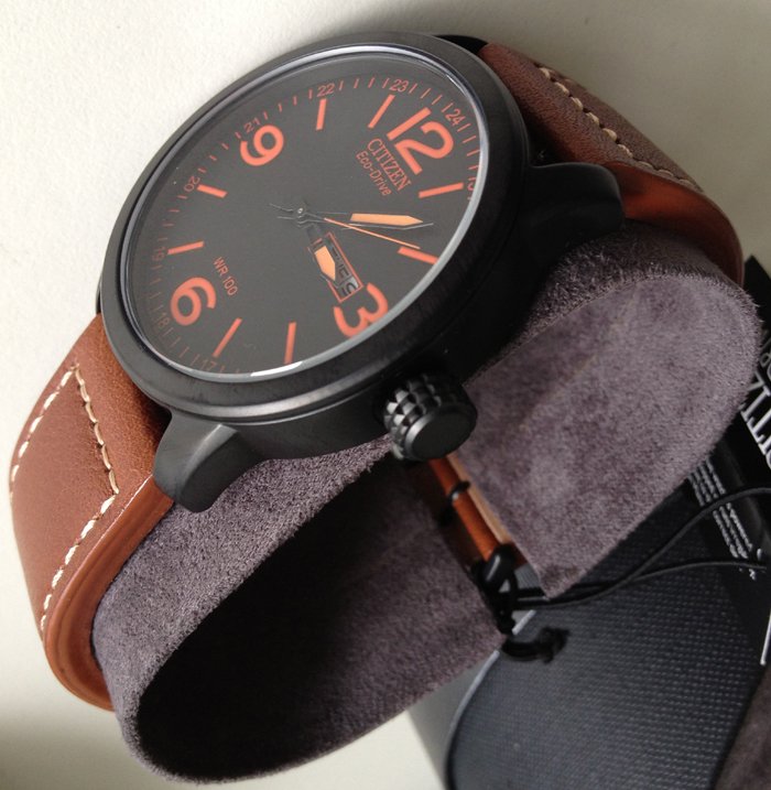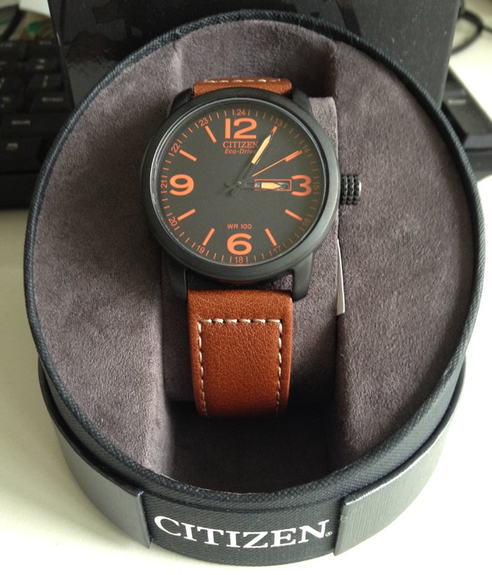 Citizen西铁城的BM8475系列腕表素以文艺低调著称,尤以26E为甚,棕色皮带配合橙色指针时标,散发出浓浓的德(yin)味(dang)气息。采用Eco-Drive光动能机芯,3点钟位置双日历显示,支持夜光。在低调的文艺范儿中参杂了几许淡淡的高富帅的属性。美国亚马逊(下单教程)下单自动九折实付$106.31,到手约¥720(不含税)