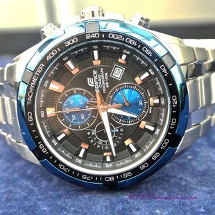 CASIO卡西欧的这款EF-539D-1A2V手表采用日本石英机芯,矿物晶体表镜下为黑色表盘,夜光指针和标时,三个计时码表,带测速仪; 4点日期显示,蓝色表圈,非常醒目,为这款表增色不少;表壳直径48毫米,防水100米。美国亚马逊(下单教程)特价$69.99,到手约¥470