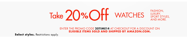 Amazon:无门槛新优惠码,手表额外8折 20TIME14