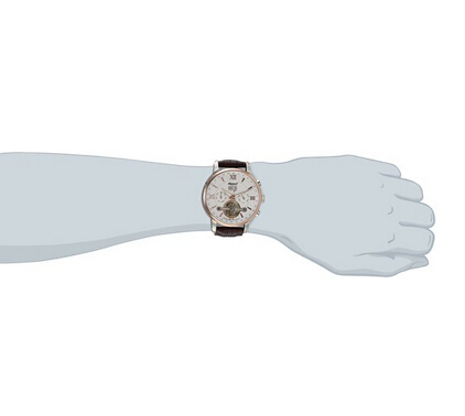 这款男士腕表配备精准的自动机械机芯。玫瑰金的不锈钢表壳和棕色的小牛皮表带。采用坚固的矿物玻璃表镜,白色表盘搭配玫瑰色的刻度和指针。时尚三眼式子表盘分别表示月份和星期,6点处的镂空小表盘,可清晰看到机芯运转。在12点钟位置显示日期。指针有白色荧光填充,方便夜间使用。表壳直径42 mm,厚8毫米,30米生活防水。整体设计大气时尚。美国亚马逊(下单教程)特价$224.99,转运到手约¥1450(不含税),用码可更低