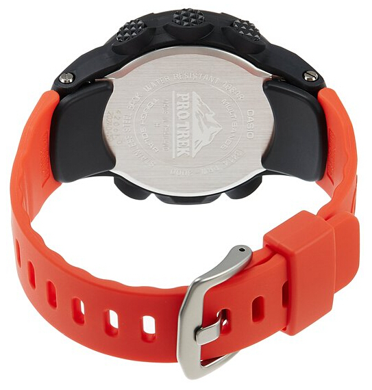 PRW-3000搭载了CASIO第三版全新三重功能传感器(数字罗盘、温度感应器、高度计),比以往的老款感应器的体积减小95%,能耗减少了90%,从而让手表变得更轻薄,表盘直径由PAW2000的50mm缩小到46mm。太阳能充电即使在微弱的日光灯下也能发挥充电功能。全球6局电波依然保留,包括国内商丘站信号,达到“分秒不差”的精确走时。日出日落时间显示也是非常实用的功能,防刮矿物晶体表镜,树脂表壳和表带,防水100m。