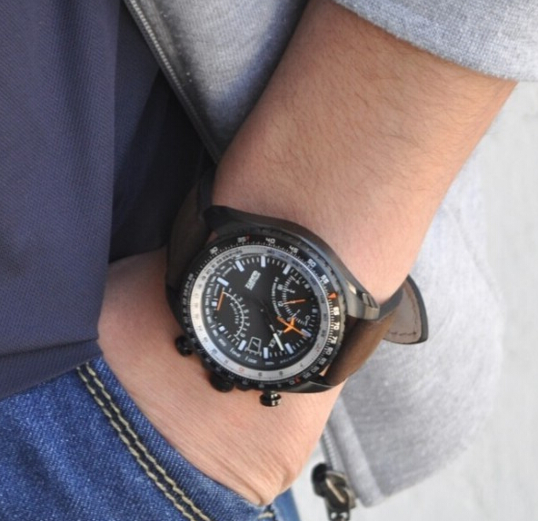 采用天美时特有的六指针机芯,表径46mm,厚度13mm适合大多数人佩戴,离子镀灰表壳搭配黑色指针,10点钟24小时计时,5点钟10分钟计时,3点钟日历显示,表盘外沿为测距、测速、深度等测量表圈,计时指针采用超酷飞返/逆跳式设计,小牛皮表带,防划矿物表镜,防水深度100米。目前售价$89.99,发货重量1磅,预计含运费到手¥640。(海淘教程)