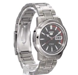 这款表属于精工5号系列。精工五号系列是精工的代表作,也是市面上性价比最高的自动机械表款,5号的意思是指防震,防水,防磁,双历,夜光五种特点。此款手表为不锈钢表全表带,黑色表盘,自动机芯和30M防水。很不错的手表,造型也很时尚。美国亚马逊(下单教程)特价到$40.51,转运到手约¥290