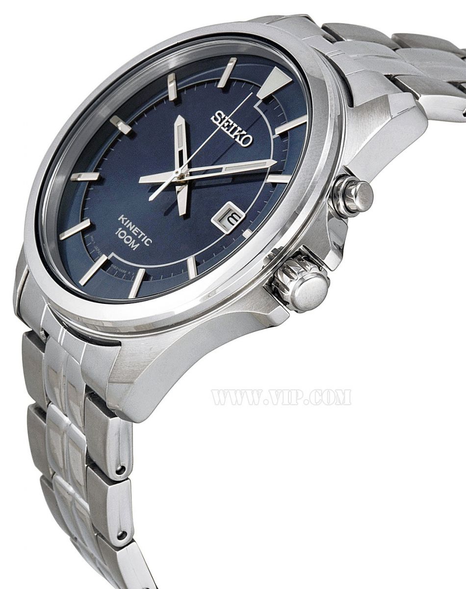 此款精工男士手表内置精确日本石英机芯,外观采用银色抛光不锈钢表壳和表链,防刮耐磨高强度Hardlex玻璃表镜下为蓝色分层表盘,表盘上镶有银色条形刻度,内缘精确到秒,3点钟方向为日历显示窗口,夜光时分秒指针方便读取,表壳直径42mm,100m防水。采用精工特有的Kinetic人动电能专利技术,原理类似自动机械机芯的能量存储,区别在于Kinetic是把手腕摆动的动能转换为电力。Kinetic机芯的手表日常佩戴即可给表内电池充电,充满后可独立运行6个月。美国亚马逊(下单教程)特价$122.39,转运到手约¥800(不含税)