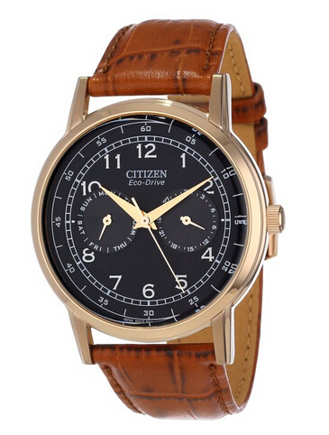 CITIZEN西铁城公司的前身为日本尚工舍时计研究所,创立于1918年,主要从事钟表的开发和制造。此款西铁城男士光动能手表内置精确日本石英机芯,利用自然光供能,无需电池,节能环保,外观采用棕色真皮表带搭配金色不锈钢表壳,经典高贵,气质非凡,防刮耐磨高强度玻璃表镜下为黑色表盘,表盘上带有夜光全时刻度,还有日期,星期副表盘,金色时分秒指针,表壳直径42mm,防水深度30m。美国亚马逊(下单教程)$187.50,到手约1180元!