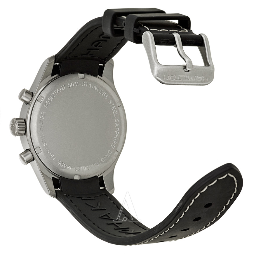 HAMILTON Men's Khaki Chrono Watch汉密尔顿三眼计时男表,属于卡其系列,型号为H68582333,采用三眼计时黑色表盘,3点钟位置带有日期显示窗,带小秒针、30分钟计时和1/10秒计时。采用瑞士产石英机芯,表盘直径为40mm,厚度为12mm,一般人也HOLD得住,表镜为防划伤蓝宝石水晶玻璃,黑色橡胶表带偏向运动风格,防水深度50米。 Ashford(下单教程)特价后用码AFFKHAKI199实付$199,直邮到手约¥1243(不含税)