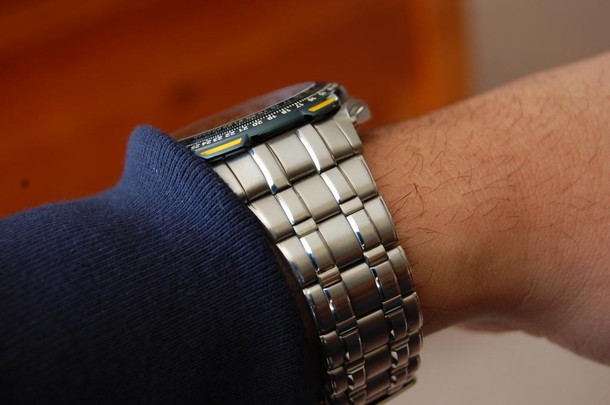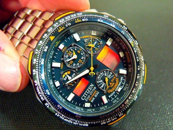 这款西铁城空中之鹰A-T Eco Drive男款光动能腕表型号是JY0040-59L,虽然不是最高端款,但人气依旧很高,外观上银色不锈钢金属腕带搭配海蓝色表盘和明黄刻度装饰,活力十足,手表采用Eco-Drive U600光动能机芯,在有任何可见光源存在的条件下都能充电,表径45mm,厚度15mm,指针数字双显,防刮矿物晶体表盘,功能方面:万年历、电波接收(可接收3局电波:日本、美国、德国,我国东部沿海均可使用)、世界时间、闹铃、剩余电量显示等均具备,防水深度200米。美国亚马逊(下单教程)$351.85 转运到手约¥2250(不含税)
