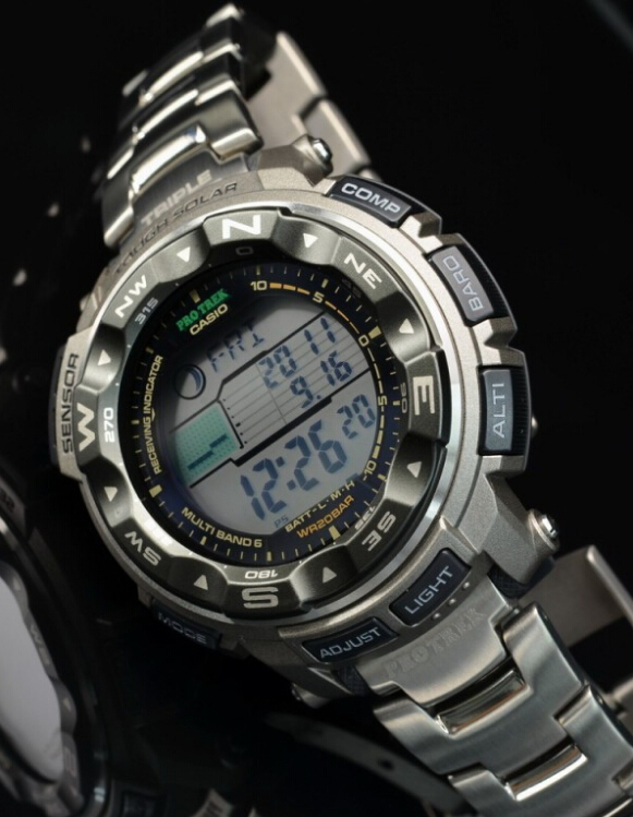 8折码后自营近期低价~CASIO 卡西欧的这款PRW2500T-7CR,表带和表壳均采用钛合金材质,不刺激皮肤并且非常轻,抗低温-10°,卡西欧登山系列当家技术三重感应器:数字罗盘、温度计、高度计,太阳能驱动,六局电波校时功能可接受到国内的电波,5组独立闹铃,整点报时,全自动背光,可显示潮汐和月相,200米防水。美国亚马逊目前报价260.69美元,下单使用八折码WATCHSAV后实付$208.55,到手约1360元(未含税)(海淘教程)