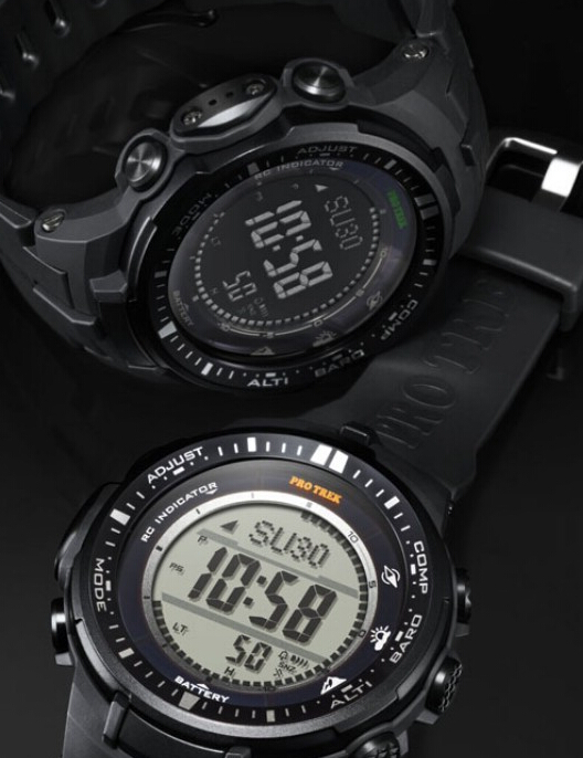 PRW-3000搭载了CASIO第三版全新三重功能传感器(数字罗盘、温度感应器、高度计),比以往的老款感应器的体积减小95%,能耗减少了90%,从而让手表变得更轻薄,表盘直径由PAW2000的50mm缩小到46mm。太阳能充电即使在微弱的日光灯下也能发挥充电功能。全球6局电波依然保留,包括国内商丘站信号,达到“分秒不差”的精确走时。日出日落时间显示也是非常实用的功能,防刮矿物晶体表镜,树脂表壳和表带,防水100m。