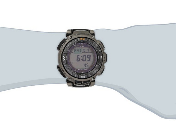 卡西欧手表是日本三大品牌之一,这款PAG240T是卡西欧旗下Pathfinder开拓者系列,钛合金表带。手表采用太阳能驱动,拥有温度计、气压值、海拔,并具有海拔绘图功能,当接近预设目标高度会进行提示,手表最高可以承受-10℃低温,100米的防水深度.美国亚马逊(下单教程)折后$147.83(用码20FWATCH,到手约990元)
